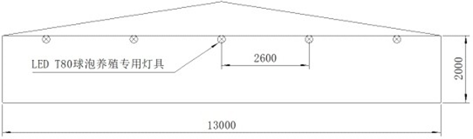 - 平养: 灯具处于同一水平高度, 间隔2 - 3米且平均分布于养殖舍内, 配合 球泡型灯具的特点, 可以使得笼舍内照度非常均匀, 使用专用的灯头线供 电, 可以有效地降低笼设备综合布线的难易程度, 还可节约安装空间。