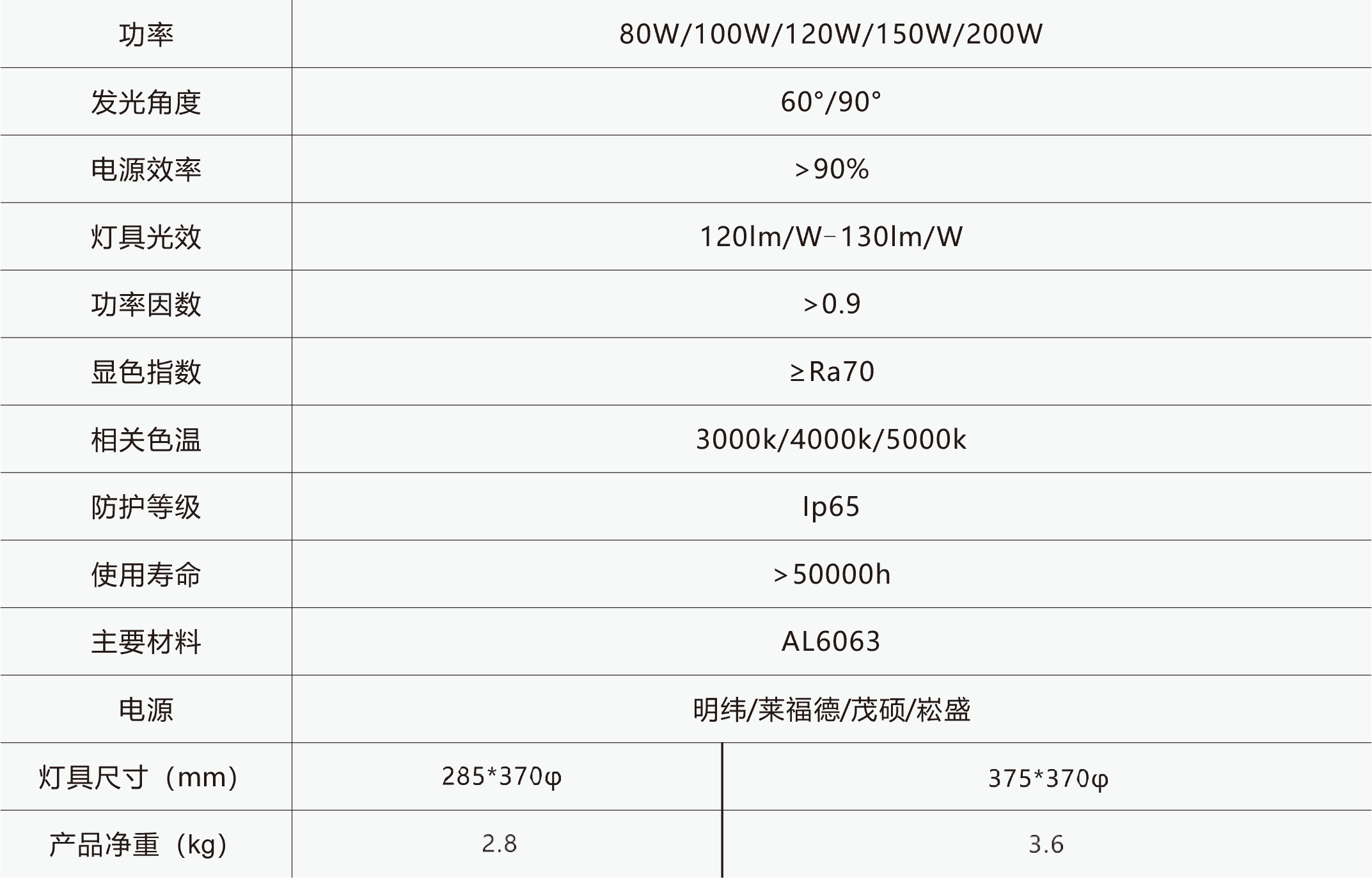 采用PC透镜, 加装反光罩,高透光率、防眩光、光照范围大